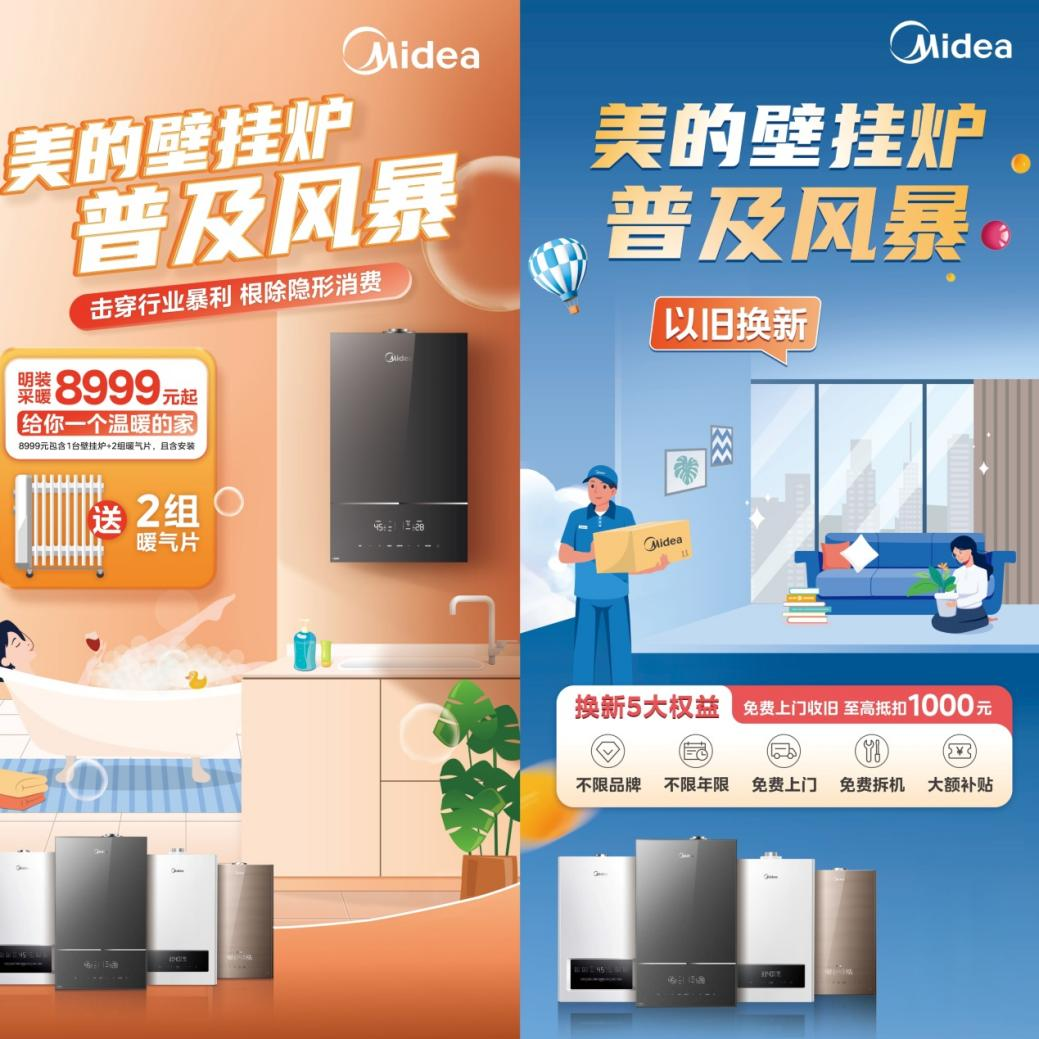 在此背景下,美的壁挂炉积极响应国家以旧换新政策,通过线上线下多渠道开展多种促销活动,将以旧换新的福利送进千家万户。