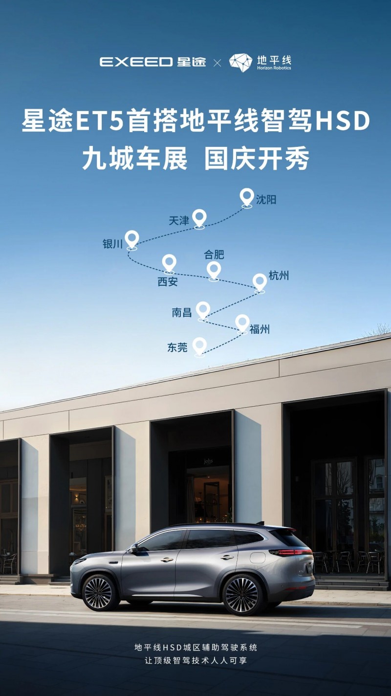 伴随国庆假期的到来,汽车市场迎来新一轮观展热潮。自9月30日起,奇瑞高端车型星途et5携全球首搭的地平线智驾hsd及旗舰级大算力芯片征程6p正式登陆东莞、南昌、杭州、银川、合肥、沈阳、天津、福州、西安九大城市车展。凭借“年轻家庭首选智慧安全suv”的精准定位,星途et5迅速聚拢市场目光,成为近期最受关注的智能suv新选择。