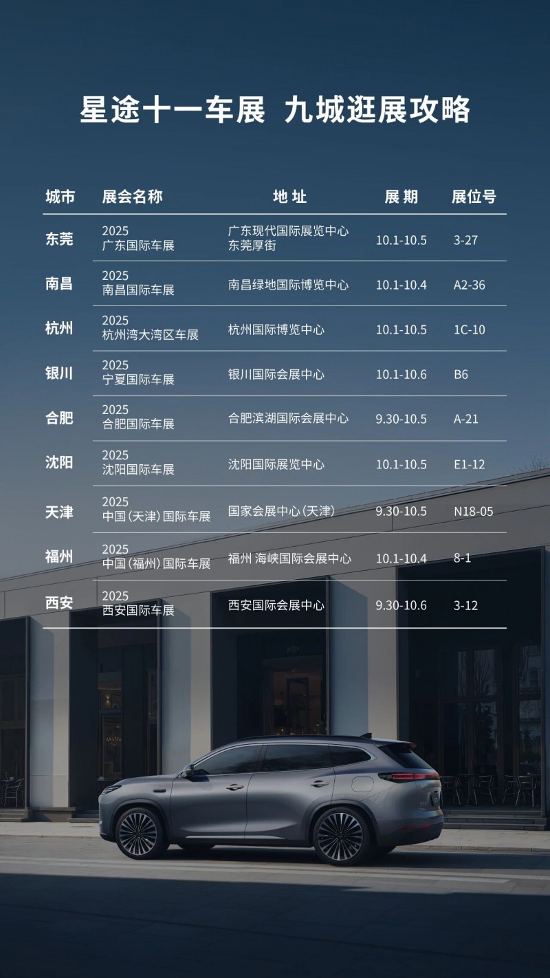 9月30日至10月6日,星途et5九城巡展正火热进行中。无论是希望近距离体验智驾黑科技,还是计划为家庭添置一款安全可靠的座驾,消费者均可前往东莞、南昌、杭州等九大城市车展现场,亲身感受这款“家庭新宠”的独特魅力。