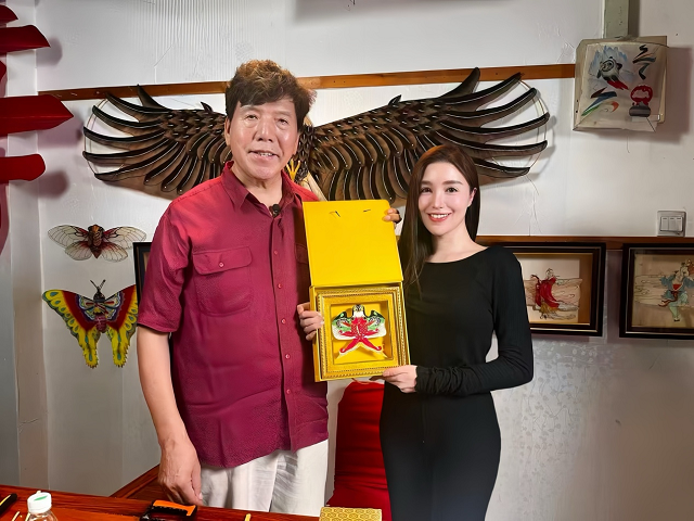 (图为国家级非物质文化遗产传承人魏国秋老师,与陈米薇将非遗透过新ip「台湾的奈个女孩」传递给两岸更多年青人)